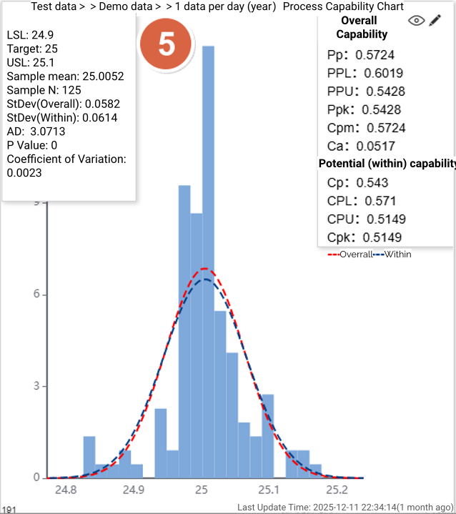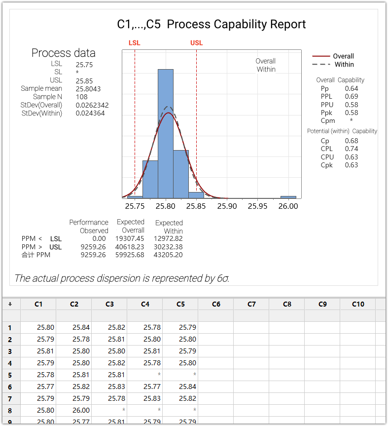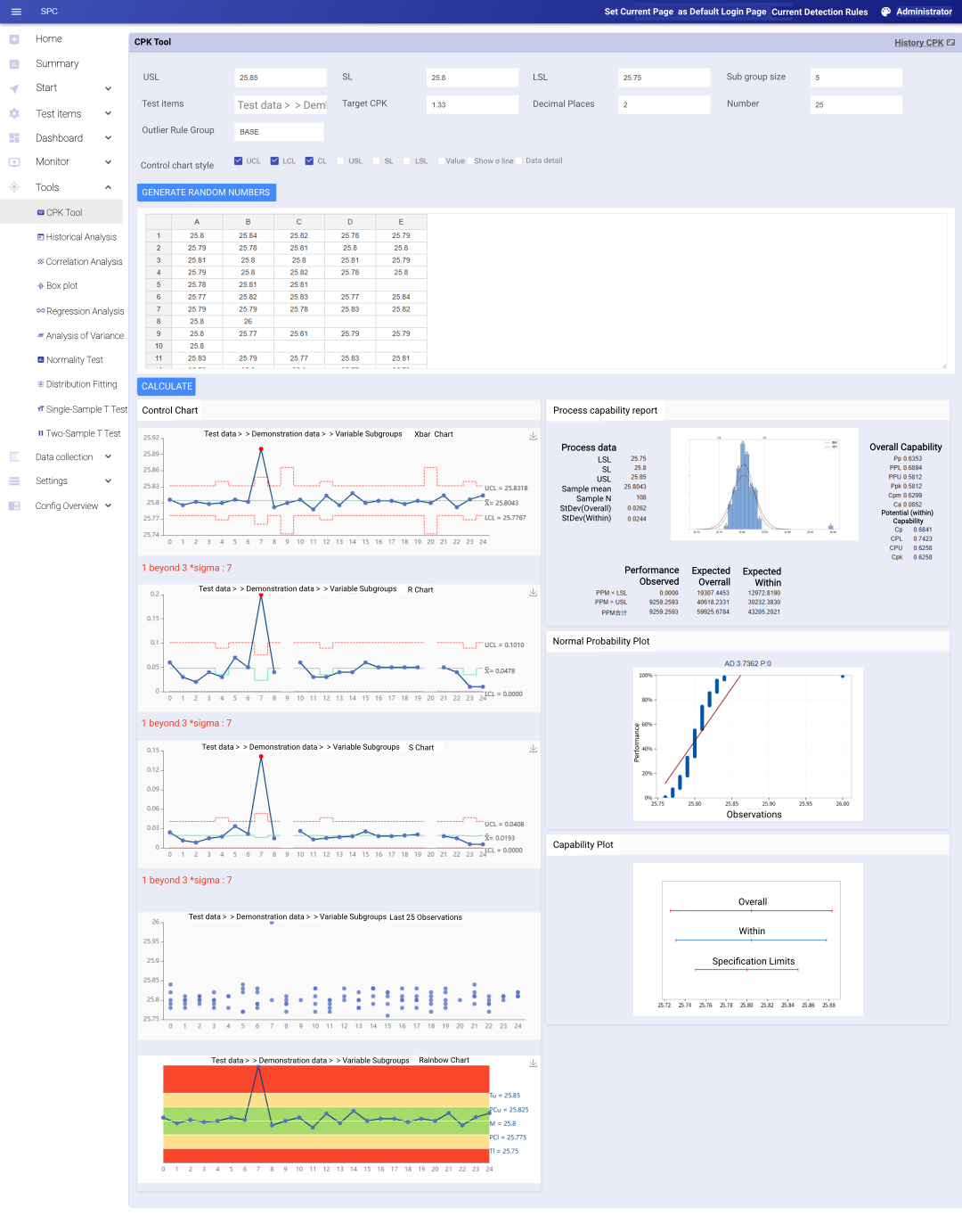 The CPK Tool fully supports analysis based on variable subgroup sizes, ensuring consistency between SPC monitoring and capability evaluation.