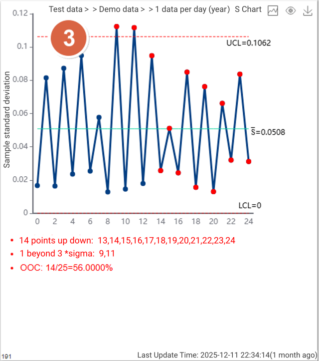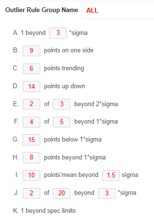 For each rule, parameters such as the number of consecutive points or sigma thresholds can be fully customized.
